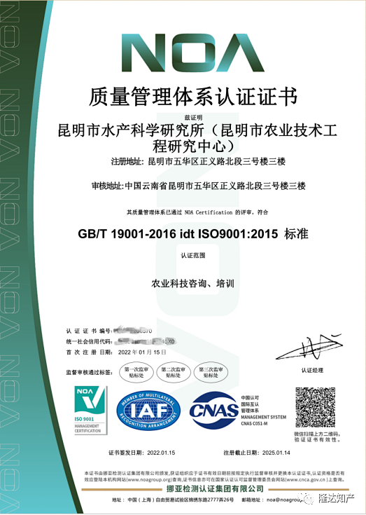 冬来露凝霜,大寒风轻扬。2022年1月15日,昆明市水产科学研究所通过GB/T19001-2016 /ISO9001:2015 国际认证,该认证是当今国际上最权威,也是最被广泛接受和应用的科技服务领域的质量管理体系认证标准。 202* 一、隆达知产质量体系认证辅导 隆达知识产权平台质量体系认证辅导专家潘志冰老师会同昆明市水产科学研究所领导,积极开展质量认证体系启动会,强调此次认证的全局性与全员性,着力促进质量体系有计划、有步骤进行。 (昆明市水产科学研究所质量认证体系启动会) 潘老师指导昆明水产科学研究所接受并通过NOA的审核认证,最终获得中国国家认证认可监督管理委员会(CNCA)批准设立的上海挪亚检测认证集团有限公司所颁发的“NOA 质量管理体系认证证书”。 未来,隆达知识产权平台将推动多体系融合工作的开展,切实为企业提供综合性、全方位的体系认证服务,助力中小型企业转型发展。 202* 二、昆明市水产科学研究所为何能获得国际认证? 作为农业和农村科技发展的引领人,食品安全是人们最关心的问题,“绿色、有机”常常是人们所追求的健康食品标志,而昆明市水产科学研究所获得ISO国际认证,意味着昆明水产研究所已建立符合国家、国际标准体系所要求的科技研究行业的服务规范,也能够为企业、客户提供更加安全、更有保障的服务咨询、技术培训。那么,昆明市水产科学研究所凭什么获得国际认证? ●昆明市水产科学研究所一直注重研究农业和农村科技发展状况、趋势和重大问题,为市科技局宏观决策提供有力对策和建议。 ● 昆明市水产科学研究所在水产养殖方面始终坚持做好新品种的引进、开发,养殖技术和鱼病防治技术的试验研究,并推广新技术、新品种。 ● 搭建行业引领、技术支持、服务咨询三位一体的科技服务平台。 除了以上三点,昆明市水产科学研究所在工程和技术研究领域的积累以及市科技局的信息安全管理体系基础,也是其能够获得ISO国际认证的重要原因。 202* 三、对于ISO国际认证,你知道些什么 01 什么是ISO9001:2015认证? ISO9001是ISO9000族标准所包括的一组质量管理体系核心标准之一。ISO9000族标准是国际标准化组织(ISO)在1994年提出的概念,是指"由ISO/Tc176(国际标准化组织质量管理和质量保证技术委员会)制定的国际标准。 02 ISO9001标准 ISO9001用于证实组织具有提供满足顾客要求和适用法规要求的产品的能力,目的在于增进顾客满意度。随着商品经济的不断扩大和日益国际化,为提高产品的信誉、减少重复检验、削弱和消除贸易技术壁垒、维护生产者、经销者、用户和消费者各方权益,这个第三认证方不受产销双方经济利益支配,公证、科学,是各国对产品和企业进行质量评价和监督的通行证;作为顾客对供方质量体系审核的依据;企业有满足其订购产品技术要求的能力。通过认证的企业,既表明在各项管理系统整合上已达到了国际标准,也表明企业能持续稳定地向客户提供预期和满意的合格产品和服务。 2015 版 ISO9001《质量管理体系 要求》国际标准计划于 2015年发布 GB/T 19001-2015《质量管理体系要求》。ISO9001:2015标准发布1年后,所有经认可的认证机构所发放的认证证书均为ISO9001:2015认证证书。目前。国内许多机构、企业也采用了 ISO9001标准对自身的信息安全进行系统的管理。 202* 四、对企业来说,通过国际国内质量体系认证,意义何在: ● 有利于国际间的经济合作和技术交流,强化品质管理,提高企业效益;增强客户信心,扩大市场份额。 按照国际间经济合作和技术交流的惯例,合作双方必须在产品(包括服务)品质方面有共同的语言、统一的认识和共守的规范,方能进行合作与交流。ISO9000质量管理体系认证正好提供了这样的信任,有利于双方迅速达成协议。 ● 获得国际贸易绿卡——“通行证”,有益于消除国际贸易壁垒 许多国家为了保护自身的利益,设置了种种贸易壁垒,包括关税壁垒和非关税壁垒。其中非关税壁垒主要是技术壁垒,技术壁垒中,又主要是产品品质认证和ISO9000品质体系认证的壁垒。 ● 有效节省第二方审核的精力和费用 作为第一方申请了第三方的ISO9000认证并获得了认证证书以后,众多第二方就不必要再对第一方进行审核,这样,不管是对第一方还是对第二方都可以节省很多精力或费用。 ● 提升产品品质竞争优势地位 实行ISO9000国际标准化的品质管理,可以稳定地提高产品品质,使企业在产品品质竞争中处于优势地位。 202* 五、隆达知产平台专家——潘志冰 专家简介: 潘志冰 原中国检验认证集团重庆有限公司特聘专家,拥有20余年大、中小型企业及事业单位ISO9001质量管理体系、ISO140001环境管理体系、ISO18001职业健康安全管理体系、知识产权管理体系认证。 成功服务了广东卓梅尼、中山鑫海精密制造、广东隆源光电、云南靖创液态金属、云南电网等全国各类大中型企业。 隆达知产 联系电话:0871-65157662 联系邮箱: 公司地址:昆明市盘龙区二环东路永安国际大厦31层3109-3111 专利部联系方式:13888982830(李 宁老师) 项目部联系方式:13577533092(李祖梅老师) 商软部联系方式:15221518903(郭晓珏老师)