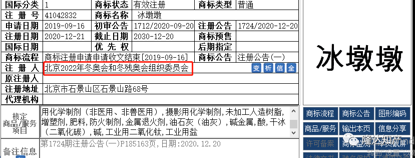 国家知识产权局予以坚决打击,依据《奥林匹克标志保护条例》、《商标法》第十条第一款第(八)项等规定,对第41128524号“冰墩墩”、第62453532号“谷爱凌”等429件商标注册申请予以驳回(附件一);依据《商标法》第四十四条第一款规定,对已注册的第41126916号“雪墩墩”、第38770198号 “谷爱凌”等43件商标依职权主动宣告无效。 03 原因在于,一部分抢注者,是出于投机心理、为了蹭热点;还有一部分专门抢注寻求“私了”,走别人的路,让别人无路可走。 奉劝大家,关于和国家相关的热点、新闻等容易造成重大社会不良影响的,请一定止步! 国家知识产权局对违反诚实信用原则、恶意抢注商标图谋不当利益的申请人及其委托的商标代理机构严肃处理。就在前几日,全国首例侵犯吉祥物形象著作权刑事案件:制售盗版吉祥物“冰墩墩”、“雪容融”玩偶案,犯罪嫌疑人任某被判处有期徒刑一年,并处罚金4万元。 那怎样合法使用“冰墩墩”等吉祥物呢? 从版权方面而言,合法使用的情形包括:为个人的学习,研究,欣赏而使用,或者是为了新闻报道,媒体不可避免的再现一些作品的内容等。 END 隆达知产 隆达知识产权平台现有70余名专业技术人才,涵盖名校硕博团队、专利代理师、前资深审查员、律师、技术经纪人、IPMS注册审核员、国家项目管理师等。 8年知识产权综合性服务经验,为各类高校、科研院所、国企央企、研发企业提供差异性、一对一的知识产权问诊集成方案,结合知识产权强企强县强园区示范工程,逐渐培育出一小批科研优势凸显企业。